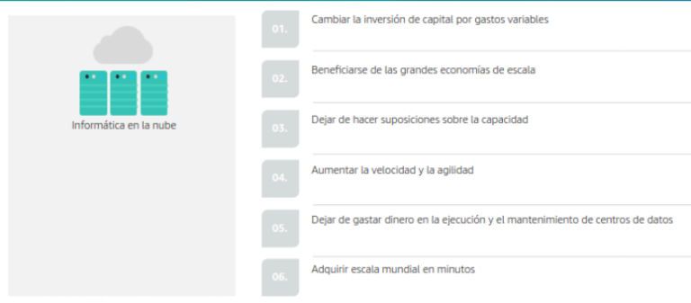 La nube ofrece una entrega de TI bajo demanda, con precios de pago por uso, en lugar de costosas inversiones iniciales. Ademas, AWS ofrece una amplia variedad de características y servicios para ayudar a los clientes a resolver los desafíos empresariales y lograr sus objetivos.