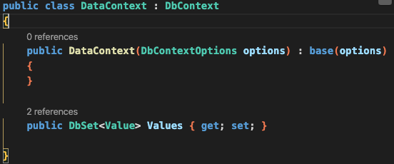 En el proyecto Domain crearemos una clase llamada Values, la cual será mapeada a la base de datos con los atributos que se muestran en la imagen.